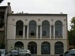 Loggia of Palazzo del Podestà, of 18th-century origin but designed to imitate Palazzo Manfredi.