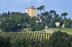 In the hilly hamlet of Oriolo dei Fichi, southeast of the city, stands a 15th-century Manfredi keep with a hexagonal plan.