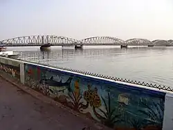 Faidherbe Bridge (French: Pont Faidherbe) is a road bridge over the Senegal River which links the island of the city of Saint-Louis in Senegal to the African mainland.[1] The metal bridge is 507.35 m (1,664.5 ft) long and 10.5 m (34 ft) wide, weighing 1,500 t (1,500 long tons; 1,700 short tons). It has eight spans, of which the longest five are 78.26 m (256.8 ft).
