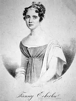 ![]() Lithographic portrait of Fanny Eckerlin, c. 1820 | |