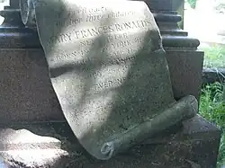 When Ronalds died in 1916, at the age of 76, a copy of the manuscript of "The Lost Chord" was buried with her, at her request.[35][36] She is buried in the Brompton Cemetery in London.[37] In an inscription to a wreath that she sent to the funeral, Princess Louise described Ronalds as "one of the kindest and most unselfish of women".[13] She was survived by her children, Pierre Lorillard Ronalds, Jr., Reginald Ronalds (who became a Rough Rider)[38] and Fannette ("Fannie") Ritchie.[5][13]