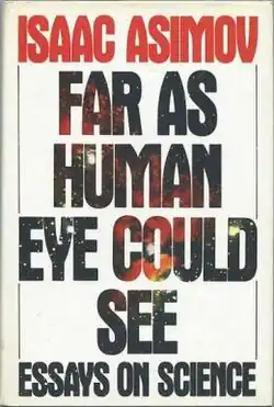 Far as Human Eye Could See: Essays on Science (published 1987) is a collection of science essays by American writer and scientist Isaac Asimov, short works which originally appeared in The Magazine of Fantasy and Science Fiction (F&SF), these being first published between November 1984 and March 1986.