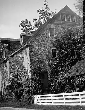 In 1740, Quaker businessman Samuel Morris bought a one-half interest in the mill, and bought the remaining half interest after Farmar's death in 1746. During the period of 1743 and 1748, Morris was building his country mansion "Whitemarsh Estate" (later known as Hope Lodge) a mere stone's throw from Farmar's Mill.[4] After Morris' death in 1770, his brother Joshua sold the mill and 4 acres (16,000 m2) of land to Isaac Mather, whose son Joseph built the present mill in 1820.[5]