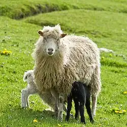 ![]() Faroese ewe with lambs in Porkeri, Faroe Islands | |
