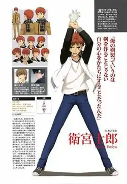 Shirou Emiya designed by Tomonori Sudo in the Unlimited Blade Works artbook[3]
