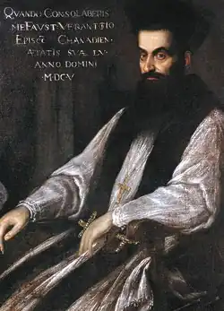 Fausto Veranzio[2][3] (Latin: Faustus Verantius; Croatian: Faust Vrančić; Hungarian and Vernacular Latin: Verancsics Faustus;[4][5] c. 1551 – 20 January 1617)[6] was a Croatian polymath, diplomat and bishop from Šibenik, then part of the Republic of Venice. He is a scientist recognised for his genius as both a Croatian and as a Croatian-Hungarian.[7][8][9][10][11][12]