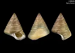 - ^ Marshall, B. A. (2016). New species of Venustatrochus Powell, 1951 from New Zealand, and new species of Falsimargarita Powell, 1951 and a new genus of the Calliostomatidae from the southwest Pacific, with comments on some other calliostomatid genera (Mollusca: Gastropoda). Molluscan Research. 36: 119-141.