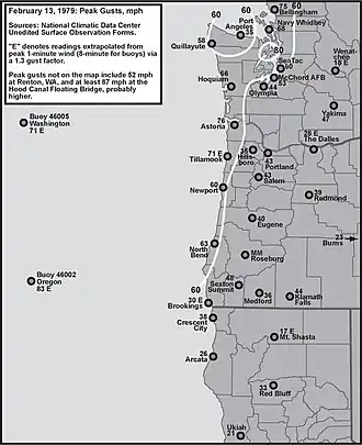 1. ^ "February 13, 1979 Windstorm". climate.washington.edu. Retrieved 2024-02-15.
