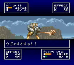 Battles take place on a square grid where each unit occupies a single square. Battle is turn-based where during a character's turn, they can move a certain amount of squares, they may then perform an action such as attack or use items. When an attack action is used it goes into a fight animation and tells the player how much damage was given/received.
