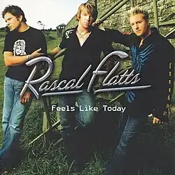 Feels Like Today is the third studio album by American country music group Rascal Flatts. It was released on September 28, 2004, by Lyric Street Records. As of July 2014, the album has sold 5.274 million copies in the United States,[2] and it has been certified 5× Multi-Platinum by the RIAA. The album produced its title track as a single along with "Bless the Broken Road", "Fast Cars and Freedom", and "Skin (Sarabeth)". "Bless the Broken Road" was initially recorded by the Nitty Gritty Dirt Band, and has also been recorded by Marcus Hummon, Melodie Crittenden (whose version was a number 42 country single in 1997), and Geoff Moore before the release of Rascal Flatts' version. It would later be a Top 5 Christian hit for Selah as well. "When the Sand Runs Out" was later recorded by Marty Raybon on his 2006 album of the same name.
