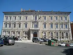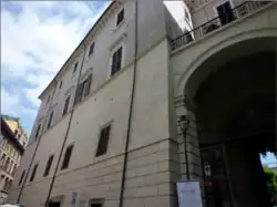In 1527, Felice was not staying in the Orsini Palace at Monte Giordano when the Sack of Rome began, and this likely saved her life, as it was one of the first palaces to be attacked.[74] She and her children were with her mother, Lucrezia, and half-siblings Gian Domenico and Francesca at the De Cupis palace when the Sack began.[75] They decided that it would be safest to divide by gender and flee Rome. The women dressed in plain clothes, hid their jewels underneath their dresses and went to Isabella d'Este's rented castle, Dodici Apostoli, which provided refuge to 1200 noblewomen and 1000 noblemen and was one of the only palaces not attacked because Isabella's son was a chief lieutenant leading the attack.[76][77] The palace was soon put under ransom.[78] Felice paid for herself and a few others, including 2000 ducats for her nephew Cristofano.[79] Felice and her family then fled Rome for Ostia where they took a boat to Civitavecchia and were united with the rest of Felice's family.[80] The family split up again because Felice wanted to be far from Rome to protect her children from Napoleone, who was stationed at Felice's Bracciano estate with some followers.[81] Felice feared that Napoleone might use the chaos of the sack as an opportunity to kill his half-siblings and reclaim what he believed to be his rightful inheritance of the Orsini lordship.[81][57] Felice and her children went to stay with her cousins in the Duchy of Urbino, where she received a palace in the hillside town of Fossombrone. In Fossombrone, Felice helped noblemen and women in Rome, sending money and coordinating supplies.[82]
