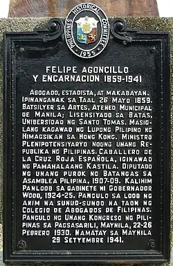 - ^ "Felipe Agoncillo remembered on his 162nd birth anniversary". National Historical Commission of the Philippines. May 27, 2021. Retrieved June 19, 2022.