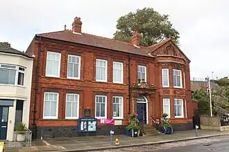 Following the formation of a local board of health for Felixstowe and Walton in 1887, one of the first actions of the new board was to commission public offices for the area.[1] The site they selected, which was on the seafront, was given to the town by the lord of the manor, E. G. Pretyman, who lived at Orwell Park. The foundation stone for the new building was laid by the member of parliament, Felix Cobbold in January 1892.[2][3] It was designed by the borough surveyor, George Horton, in the Victorian style, built by local builders, Harcourt Runnacles & Co., in red brick with terracotta dressings at a cost of £1,800 and was completed later that year.[1]