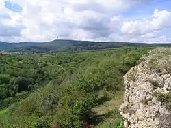 The Felsenberg-Berntal Nature Reserve (German: Naturschutzgebiet Felsenberg-Berntal), is an outlier of the Haardt mountains, which form the eastern ridge of the Palatine Forest region in western Germany. The nature reserve, which extends into the Upper Rhine Plain and has an area of 300 hectares, was established in January 2000 by a statute dated 20 December 1999.[1] The reserve lies in the county of Bad Dürkheim in the German state of Rhineland-Palatinate and comprises the Felsenberg hill and the Berntal valley. The Herxheim Karst Cave on one of its hillsides is known for its archaeological and biological finds.