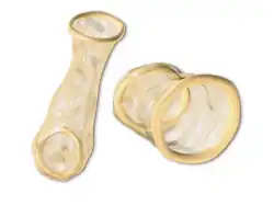 A female condom (also known as an internal condom) is a barrier device that is used during sexual intercourse as a barrier contraceptive to reduce the probability of pregnancy or sexually transmitted infection (STI). It is inserted in the vagina or anus before intercourse to reduce the risk of exposure to semen or other body fluids.[2][3][4] The female condom was invented in 1990 by Danish physician Lasse Hessel, and approved for sale in the United States by the FDA in 1993.[5] It was developed as an alternative to the older external condom, which is placed on the penis.