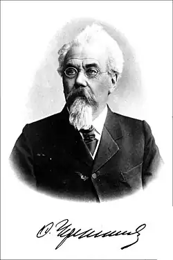 Chernyshev was born in Kiev where his parents were teachers. He was named after St. Theodosius. After studies at home, he joined Kiev gymnasium where he studied languages, mathematics and physics. He became interested in travels after meeting a family acquaintance who brought stories of sea voyages. He then joined the naval school in 1872 but in 1875 his father asked the head of the school to dismiss his son due to poor health (probably poor eyesight) and this was granted. He then joined the mining institute in 1875 and graduated from the St. Petersburg Mining Institute in 1880. Here his teachers included P.V. Eremeev and V.I. Möller, A.P. Karpinsky, I.V. Mushketov, and G. D. Romanovsky. He also received a Catherine's Scholarship. He then joined the civil service as a mining engineer and worked under V.I. Möller in the Urals. His field surveys led him to the study of stratigraphy of paleozoic deposits in the Ural Mountains. In 1882, he was put in charge of compiling a geological map at the scale of 10 Versts to an inch.[1][2]