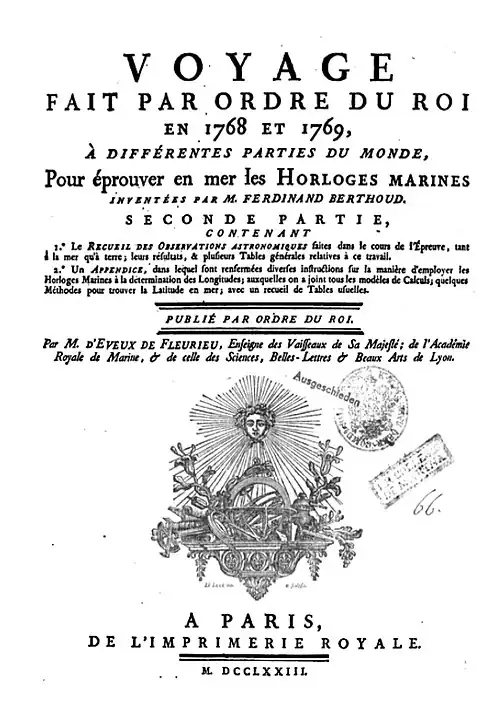 - ^ Ferdinand Berthoud, Traité des montres à longitudes, contenant la construction, la description & tous les détails de main-d'œuvre de ces Machines; leurs dimensions, la manière de les éprouver, etc., Paris: Ph.-D. Pierres, 1792, p. 15.