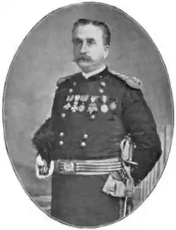 Earle was a prominent figure in the National Army and in the Grand Army of the Republic. His military career began Oct. 3, 1862, when he entered as private in Company B of the Seventh Regiment, N. Y., and was honorably discharged Oct. 29, 1869. In 1881, he re-entered military life as Captain of the Second Battery, N. G. N. Y., and became noted as one of the most efficient officers in the National Guard. The battery which he commanded was thereafter known as "Earle's Battery." Gen. Earle received his military title in 1889, when he was appointed Chief of Artillery with the rank of Brigadier-General on the staff of Governor Hill, with whom he was always on friendly terms, and he was re-appointed by Governor Flower. For ten years after his reentrance into military life he was chairman of the Auxiliary Committee of the Grand Army of the Republic. In 1884, he was decorated by the Venezuelan Government with the Order of the Bust of the Liberator in recognition of his services to that government.[2]