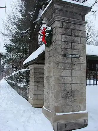 Ferger Place Historic District in Chattanooga, Tennessee was so named and added to the National Register of Historic Places in 1980. "Ferger Place" was founded in 1910 as the first exclusively White[2] gated community ("restricted private park"[3]) south of the Mason–Dixon line. Founded by two wealthy investors, the Ferger Brothers, J. Fred Ferger and J. Herman Ferger,[4] on the outskirts of town, and surrounded by a fence to keep grazing cattle out, Ferger Place attracted higher class families including wealthy businessmen and Government officials. Off of Main Street in east downtown Chattanooga, this 240-acre neighborhood includes a wide spectrum of architectural styles of homes and welcomes newcomers to its safety oriented community. Making up both Morningside and Eveningside Drives, the homes reflect an array of styles ranging from 1910 through the 1930s. The Historic Neighborhood is also known for its distinct 'U' shape of 69 beautiful homes. This neighborhood was especially attractive because of the Industrial Revolution that spread throughout the nation at the beginning of the 20th century.