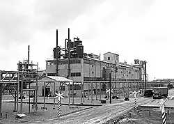 In response to the Soviet Union's detonation of an atomic bomb on 29 August 1949,[6] and the outbreak of war in Korea on 25 June 1950,[7] the AEC embarked on a major expansion program.[8] New facilities included a lithium-6 enrichment plant at Oak Ridge; gaseous diffusion plants at Oak Ridge, Paducah, Kentucky and Portsmouth, Ohio; weapons component plants at Rocky Flats and Amarillo; two "Jumbo" production reactors at the Hanford Site; and five new production reactors at Savannah River Site.[9][10] To relieve the burden of increased production on Mallinckrodt, and aware that its aging facilities might become less efficient and healthy in the future, Walter J. Williams, the AEC's Director of Production, revived the idea of a consolidated feed materials plant. In October 1950, he authorized the AEC's New York Operations Office to design a new feed materials plant that would carry out all phases of uranium processing work. The new plant was to be up and running by 1 January 1953.[4][11]
