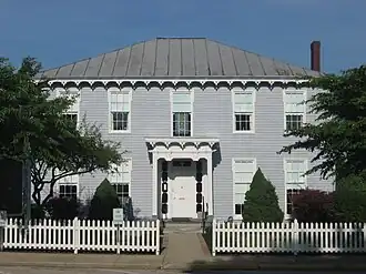 Fernando G. Taylor House, also known as the Taylor-Kaiser-Smith House, is a historic home in Versailles, Ripley County, Indiana. It was built about 1860, and is a two-story, rectangular, five bay, vernacular frame dwelling with Gothic Revival style influences. It measures 44 feet wide and 36 feet deep. The house rests on a poured concrete foundation and has a hipped roof. It was moved to its present location in 1983.[2]: 2