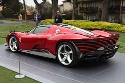 The Ferrari Daytona SP3 is a limited production mid-engine sports car produced by the Italian automobile manufacturer Ferrari, unveiled on 20 November 2021 for the 2023 model year. The Daytona SP3 is the latest in the "Icona" series of high-performance cars being produced by Ferrari after the Ferrari Monza SP series. 599 examples were to be built from 2022 and sold for $2.25 million each. The Daytona SP3 is powered by a naturally aspirated 6.5-liter V12 that is shared with the 812 Superfast. The SP3 marks the first return of Ferrari to naturally-aspirated V12, mid-mounted engines for limited edition cars without hybrid electric systems since the Ferrari Enzo, introduced in 2002.[2][3]