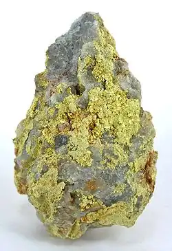 It occurs as an oxidation product of molybdenum bearing ore deposits. Associated minerals include: molybdenite, pyrite and chalcopyrite.[3]