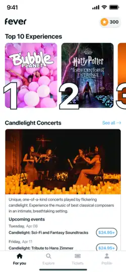 Fever is a live entertainment ticketing platform that provides users access to various cultural and entertainment events on iOS, Android, and the web. Additionally, it offers ticketing, marketing and technology services for event management companies.[1][2]