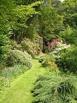 The gardens and parkland at Ffynone are designated Grade I on the Cadw/ICOMOS Register of Parks and Gardens of Special Historic Interest in Wales.[18] Structures within the gardens with listings include: the terrace to the south of the house, together with its enclosing walls and balustrades, which are listed at Grade II*;[19][20] and a sundial on the west lawn;[21][22] the Western Terrace;[23][24] a fountain;[25][26] and a gazebo, all of which are listed Grade II.[27][28]