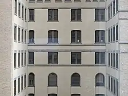 The Fidelity and Deposit Company was headquartered in 1894 in the Fidelity Building, a landmark granite skyscraper at North Charles and West Lexington Streets in Baltimore. Completed in 1894, the building is a 15-story, 67 m (220 ft) skyscraper in the central business district of Baltimore.[3] The building was designed by the prominent local architectural firm of Baldwin & Pennington,[3] composed of leading regional designers Ephraim Francis Baldwin and Josias Pennington - main "house architects" for stations and structures of the dominant Baltimore and Ohio Railroad.[3] The building originally contained eight floors with a façade of grey granite, corner cupola tower and mansard roof.[1]