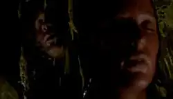 ![]() Mulder and Scully, trapped underground by a giant mushroom. The scene required David Duchovny and Gillian Anderson to be covered in faux-fungal "goop" and remain underground for hours. | |