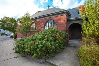 Designed by William R. Walker & Son and constructed by S. Mason & H. A. Smith in 1886, the one story red brick Queen Anne style building is basically rectangular with a low-pitched hipped roof. The red bricks are laid in dark red mortar and is contrasted by the granite sill course and brownstone belt course at window sill level. The building has a central closed entry pavilion which projects out and has two porches oriented to face Mulberry and Cedar Street. The building has three lunette windows on the sides of the main block, each divided into thirds, and a smaller windows on the pavilion's pedimented end. The rear ell has double hung two-over-two sash windows. At the time of the nomination, during the renovations to a single family home, the house had its Cedar Street porch closed in with plywood and the smaller lunette windows were boarded in, but the exterior wooden trim was largely extant.[2]