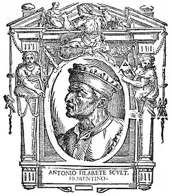 Antonio di Pietro Aver(u)lino (Italian pronunciation: [anˈtɔːnjo di ˈpjɛːtro aver(u)ˈliːno]; c. 1400 – c. 1469), known as Filarete (Italian: [filaˈrɛːte]; from Ancient Greek: φιλάρετος, meaning "lover of excellence"), was a Florentine Renaissance architect, sculptor, medallist, and architectural theorist. He is perhaps best remembered for his design of the ideal city of Sforzinda, the first ideal city plan of the Renaissance.
