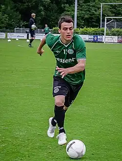 On 4 April 2012, he signed a contract with Eredivisie side Groningen and moved to the Netherlands in June 2012 after the end of the season.[6] He made his debut for Groningen on 21 October 2012.[7] After getting little playing time, Kostić finally began showing promising potential from the beginning of the 2013–14 Eredivisie; he attracted media attention after playing a brilliant game in which he had one assist against NEC,[8] and then on 25 August he added to his reputation of play-making by assisting twice against Go Ahead Eagles.[9] Finally, on 20 October 2013, Kostić scored his first ever goal for Groningen in a 1–0 win against PSV Eindhoven.[10] Kostić received criticism for a media interview after drawing 0–0 with Aberdeen F.C. in the second round of the Europa League qualifiers. He went on record after the match saying, “We go home happy, we have done 80% of what we need to go through”.[11] Groningen went on to lose the tie with the Scottish club 1–2 at the Euroborg.[12] Aberdeen winger Jonny Hayes was later quoted as saying "I was quite happy ramming their words down their throats".[13]