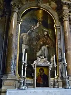 He worked alongside the fellow Peranda disciple, Matteo Ponzone, in the decoration of the Ducal palace of Mirandola. He painted a Marriage of St Catherine for the church of San Carlo of Brescia, a St Peter in Chains for the church of San Faustino Maggiore, The Grace found in the National Gallery of London, Rinaldo and Armida for the Art Gallery of Monaco, and an altarpiece for the Duomo of Sebenico (now Šibenik, Croatia).[1] For the Sanctuary of the Madonna delle Grazie in Cordovado, he painted various panels for the ceiling of the apse, depicting Apparition of the Virgin to an infirm man; Apparition of the Virgin to a Monk painting an icon; Miracle of the Virgin of the Snows at the founding of the Basilica of Santa Maria Maggiore; and Apparition of the Virgin during a battle.[2]