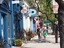 A large portion of Fillmore Street consists of shopping streets, often forming the central area of the neighborhoods that it passes through. This includes the stretch from Germania Street to Haight Street in the Lower Haight. The three blocks south and nine blocks north of Geary Boulevard are the centerpoints for the Lower and Upper Fillmore neighborhoods, respectively. The commercial stretch between Union and Chestnut Streets connects the main shopping areas of the Cow Hollow (or by some definitions, Golden Gate Valley) and Marina Districts. This area is nicknamed "The Triangle" and is a popular barhopping locale known for its yuppie patrons. The area gets its nickname from the bars found on three of the four corners of the intersection of Fillmore and Greenwich Streets.