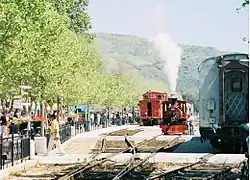 The Fillmore and Western Railway (reporting mark FWRY) was a heritage railway which operated on track owned by the Ventura County Transportation Commission.[1] Visitors to Fillmore would see filming activity as well as sets and support equipment at the company's rail yard and along the tracks between Santa Paula and Piru. They stopped operating on the line in 2021.