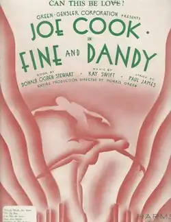Fine and Dandy is a musical comedy in two acts with a book by Donald Ogden Stewart, music by Kay Swift and lyrics by Paul James. It was produced on Broadway in 1930.