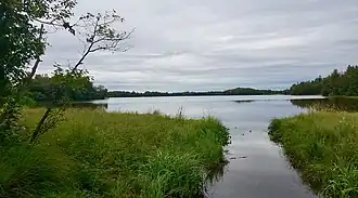 Finger Lake is a lake in Wasilla, Alaska. It is not technically a finger lake, but was named so by Captain Edward Glenn, who led an army expedition to Alaska in 1898 and felt that "when viewing the lake on a map, a point of land in the lake gives the impression of a finger."[1] The lake has populations of Rainbow Trout, Arctic Char and Arctic Grayling and is a popular fishing spot, including ice fishing in winter.[3] The lake is at the south end of the Seven-mile canoe trail that ends at Wasilla Lake, the only portage is at the north end of Finger Lake.[4]