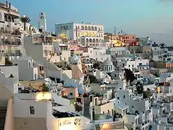 Firá (Greek: Φηρά, pronounced [fiˈra], official name Φηρά Θήρας - Firá Thíras) is the modern capital of the Greek Aegean island of Santorini (Thera).[2] A traditional settlement,[3] "Firá" derives its name from an alternative pronunciation of "Thíra", the ancient name of the island itself.