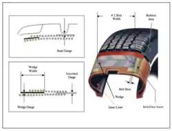 Before May 1998, the belt wedge gauge for ATX and Wilderness AT tires was less than for comparable tires from other manufacturers.[15] The wedge gauge on completed tires was also less than Firestone's minimum standards.[15] The wedge on these tires was not large enough to resist crack formation and growth.[15] The design of the belt wedge changed in May 1998 making it larger and comparable in size to tires manufactured by other companies.