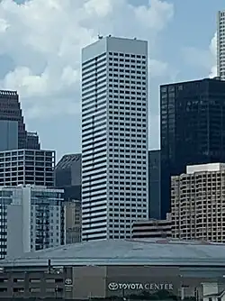 First City Tower, located at 1001 Fannin, is a skyscraper in downtown Houston, Texas. The building rises 662 feet (202 m) in height.[3] Completed in 1981, it contains 49 floors. First City Tower currently stands as the 14th-tallest building in the city. The architectural firm who designed the building was Morris-Aubry, and was built by W. S. Bellows Construction Corporation. The structure is an example of late-modernist architecture.[2] The tower, which formerly housed the headquarters of the now-defunct First City National Bank, now serves as the global headquarters of Waste Management, Inc,[3] and the headquarters of Vinson & Elkins.[4][5] It also houses the U.S. headquarters of Campus Living Villages.[6]