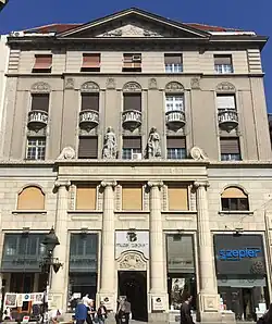 After the disruption of World War I, Zagreb emerged as the dominant financial center of the newly formed Kingdom of Yugoslavia, and the First Croatian Savings Bank administered 40 percent of all deposits in the city.[2]: 35  By 1924, it had branches in Belgrade, Bjelovar, Slavonski Brod, Celje, Crikvenica, Čakovec, Daruvar, Delnice, Đakovo, Dubrovnik, Đurđevac, Ilok, Karlovac, Kraljevica, Križevci, Ljubljana, Maribor, Sremska Mitrovica, Nova Gradiška, Novi Sad, Ogulin, Osijek, Požega, Senj, Sisak, Skopje, Split, Subotica, Sušak, Sveti Ivan Zelina, Varaždin, Velika Gorica, Vinkovci, Virovitica, Vukovar, Zemun as well as Fiume.[6] In 1928, it took over the United Central Bank of Sarajevo (Serbo-Croatian: Ujedinjena centralna banka), resulting in further branches in Banja Luka, Bihać, Brčko, Derventa, Mostar, Travnik, and Tuzla. In 1930-1931, its chairman Miroslav Kulmer was vice-governor of the National Bank of the Kingdom of Yugoslavia.[4]: 165