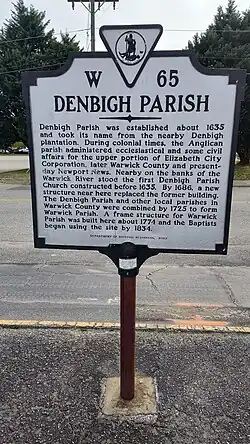 - ^ Mason, George Carrington (1949). "The First Colonial Church of Denbigh Parish, Warwick County, Virginia". The Virginia Magazine of History and Biography. 57 (3): 286–289. Retrieved September 18, 2024.
