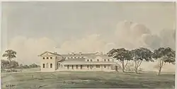 ![]() An 1809 watercolour painting of the first government house erected in Sydney. | |