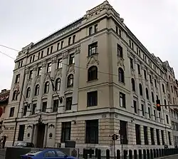 Former building of Hazai Bank in Budapest, designed in 1911 by architect Károly Rainer and inaugurated in 1914; later the British Embassy from 1948 to 2017[6][7]