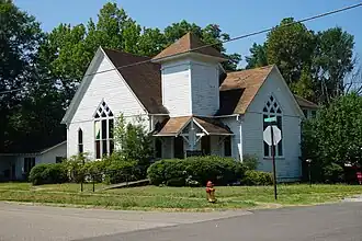 The First Presbyterian Church is a historic church at the junction of Vandervoort and N. Fifth Sts., SW corner in De Queen, Arkansas. It is a single-story wood-frame structure, built in 1898 for a newly established congregation. The church is the city's finest example of Gothic Revival architecture, with Gothic-arched entrances on the north and east faces of the tower, and a large three-part Gothic window on the eastern gable end, topped with triangular arches. The main gable ends of the roof are decorated with brackets, as are the ends of a cross gable on the southern elevation.[2]