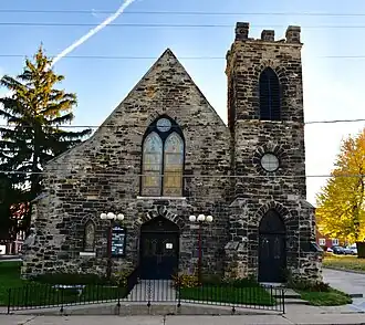 First Presbyterian Church, also known as Rock Church, is a historic Presbyterian church located at 212 E. North Street in Marshall, Saline County, Missouri, United States. It was built between 1871 and 1873, and is a one-story Gothic Revival style yellow sandstone building. It features pointed arch windows and a corner bell tower.[2]: 2