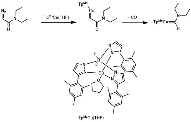 - ^ Álvarez, María; Besora, Maria; Molina, Francisco; Maseras, Feliu; Belderrain, Tomás R.; Pérez, Pedro J. (2021-03-31). "Two Copper-Carbenes from One Diazo Compound". Journal of the American Chemical Society. 143 (12): 4837–4843. doi:10.1021/jacs.1c01483. hdl:10272/19704. PMID 33733762.