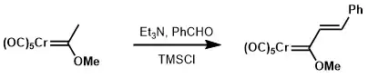 Aldol condensation of Fischer carbenes could be achieved by using much weaker bases compared to its carbonyl counterpart, such as triethylamine.[14][15]